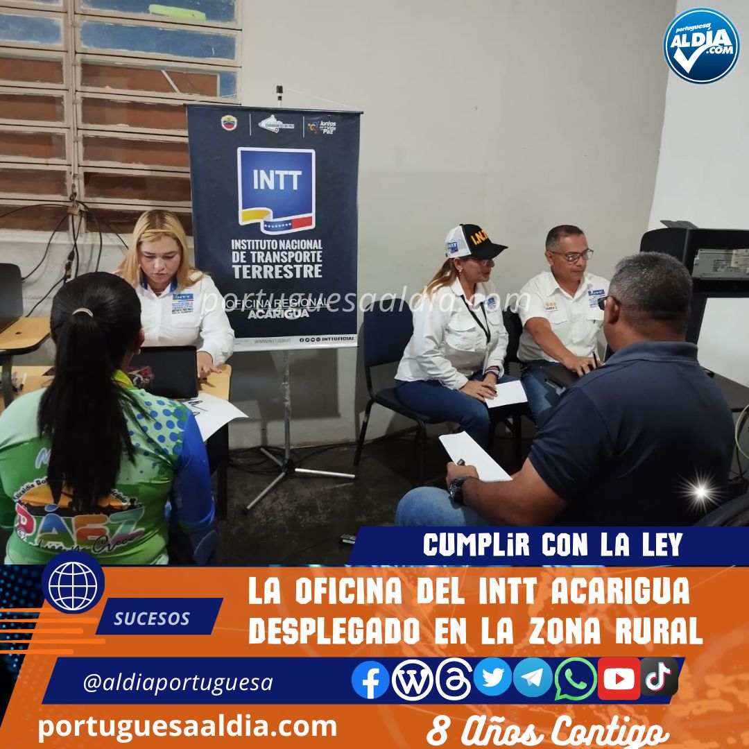 La Oficina Regional del INTT Acarigua, informó que en los próximos días se estará efectuando otros operativos en diferentes comunidades, dando respuestas a todas las personas que requieran cualquier trámite de vehículo, facilitando y agilizando el servicio. Realizando esfuerzos para darle respuesta a la ciudadanía, tal como lo ha anunciado el gobernador Primitivo Cedeño, donde las instituciones llegan a las comunidades.⁣