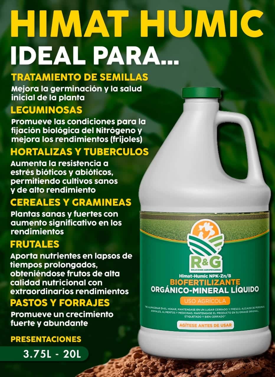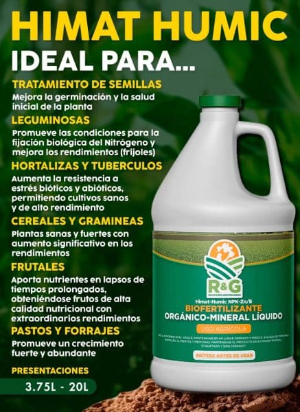 Biofertilizantes líquidos (Himat-humic NPK-Ca/Mg, NPK-Zn/Mo/Mn, NPK-Zn/B),