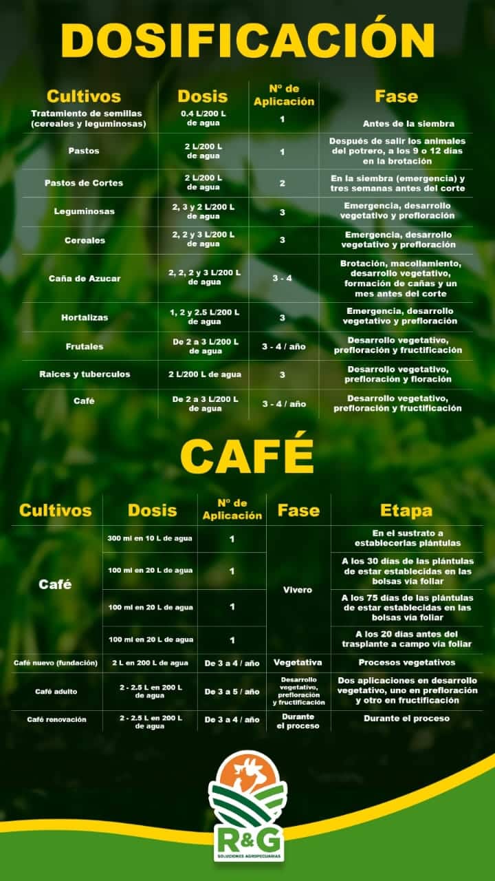 Aplicables en pastos, cereales, leguminosas y frutales que incrementan los rendimientos en los cultivos y hasta un 30% el rendimiento de materia verde y el contenido proteico en pastos y forrajes.