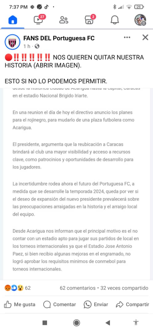Ante los irracionales rumores de la mudanza del Portuguesa FC a Caracas, el presidente del Club, Maikel Frías, desmintió categóricamente lo que se dice en RRSS y lo atribuyó que dichos comentarios «lo que quieren es generar incertidumbre».