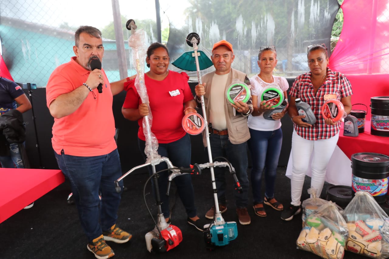 «Acá estamos cumpliendo con la promesa que realizamos de visitarlos para escuchar sus problemas y atender sus necesidades», dijo el mandatario municipal, quien hizo entrega de ayudas técnicas, láminas de zinc para la restauración de techos de algunas viviendas, así como la pintura para la recuperación de la cancha, kit deportivos y guarañas para el mantenimiento de las áreas verdes de la comunidad.