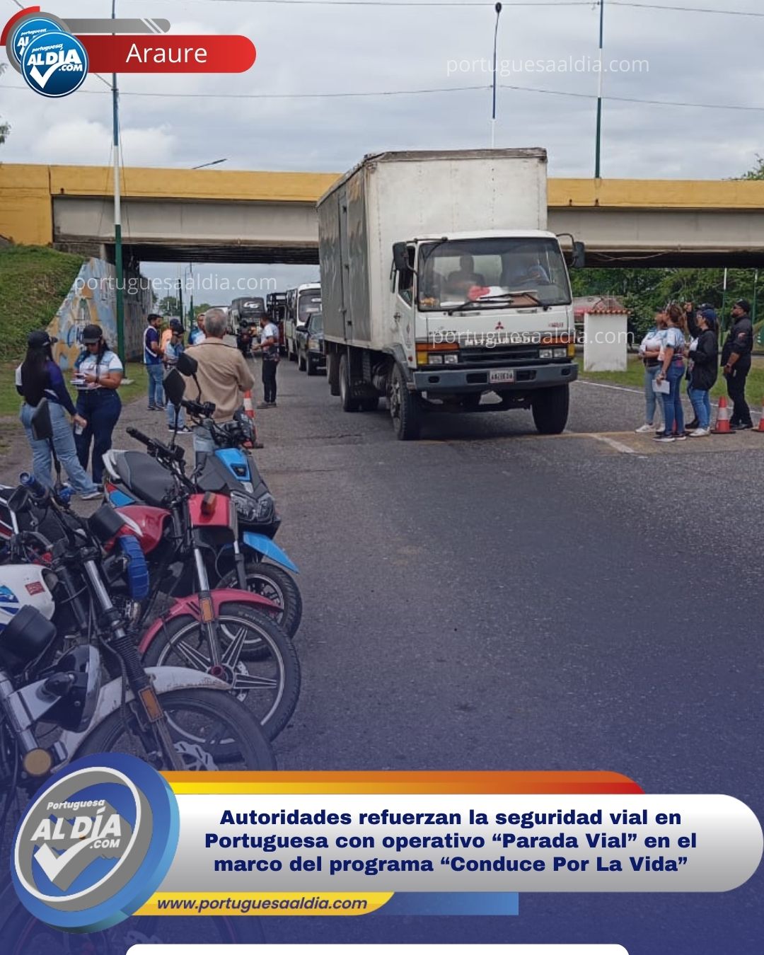 En el marco del programa de prevención «Conduce Por La Vida», El Ministerio Público del estado Portuguesa, junto a altos funcionarios de la Policía Nacional Bolivariana (PNB), Protección Civil, Cuerpo de Bomberos, Ven 911, GNB, INTT, MPPIJP, realizaron una importante Parada Vial en la autopista José Antonio Páez (JAP), sector La Flecha, durante la mañana de este Martes.