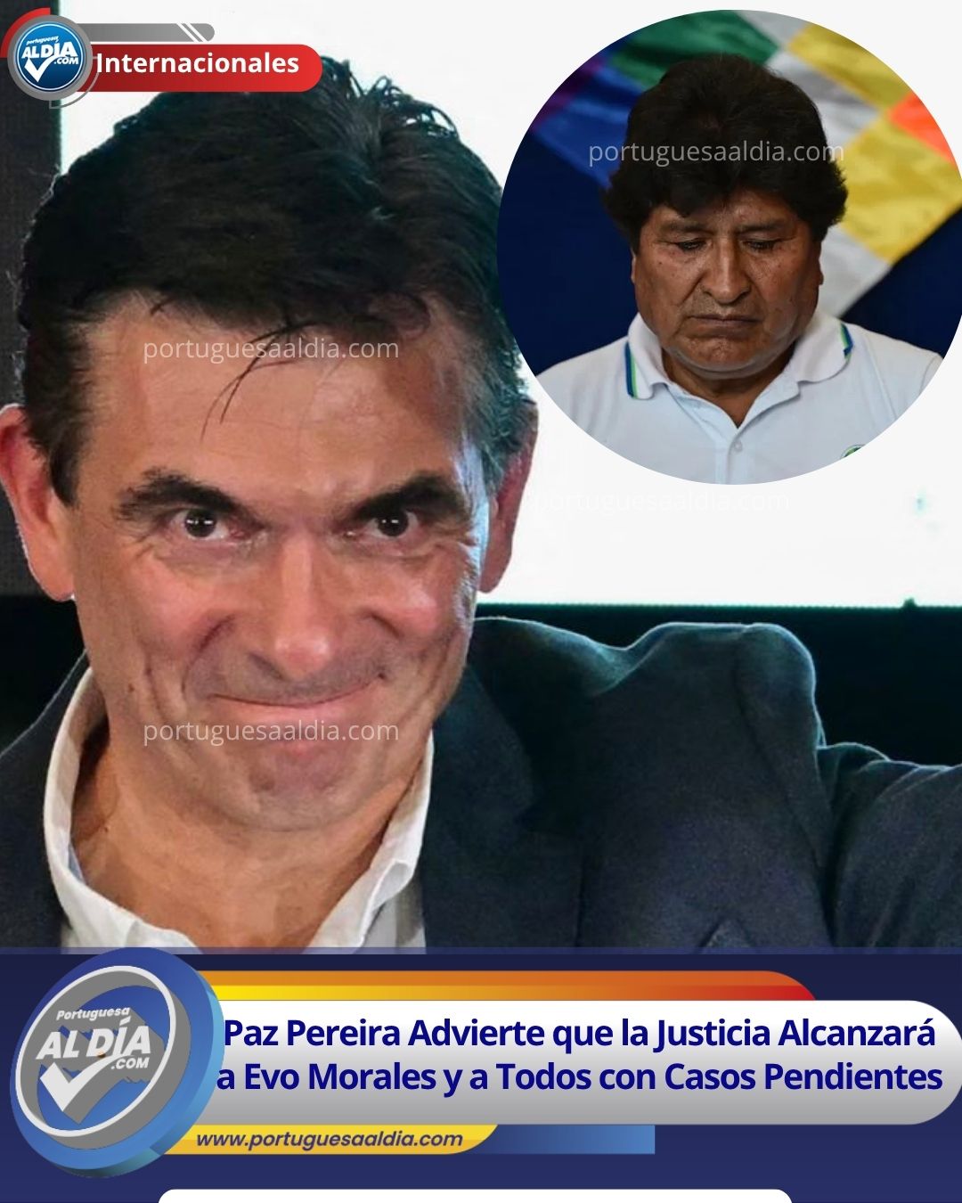 La reacción del hijo del ex presidente Jaime Paz Zamora llega luego de que se conociera una nueva acusación formal emitida por la Fiscalía de Tarija en contra del expresidente Morales. Paz Pereira, quien asumirá el cargo el 8 de noviembre tras ganar el primer balotaje en la historia de Bolivia con el 54.9% de los votos, fue enfático al declarar que como «presidente va a poner todo el peso del Estado» en la aplicación de la justicia .