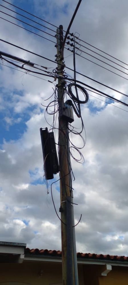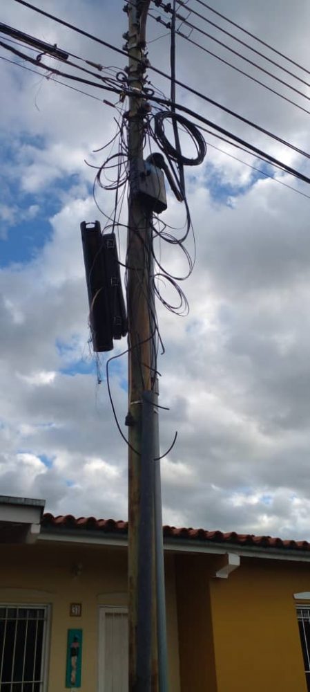 Como se podrá observar en las imágenes enviadas por los vecinos, las llamadas manga que conectan a las casas, por el tiempo, están tontamente deterioradas, la cual genera el no tener desde hace algún tiempo ni telefonía y mucho menos Internet.