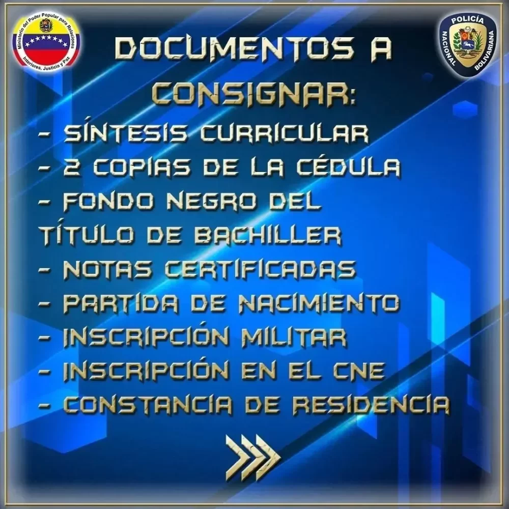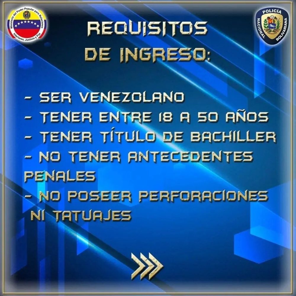 La C/J González, indicó que para ingresar a las filas de este cuerpo policial deben ser bachiller; tener una edad comprendida de 18 a 50 años; no presentar antecedentes penales ni destitución de ningún órgano militar o de seguridad.