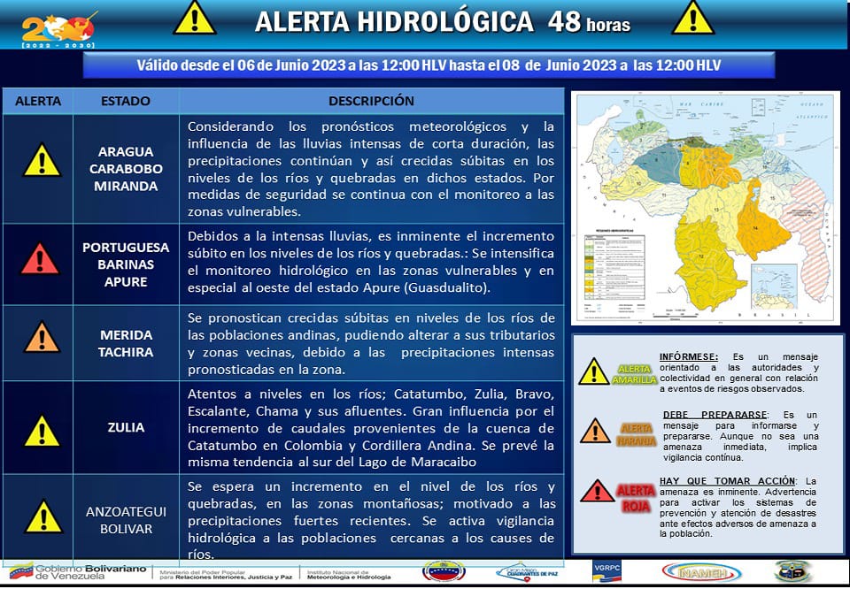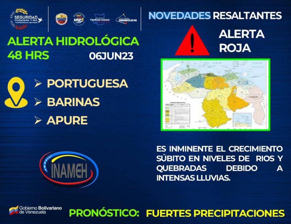 Así lo publicó en su página web el Instituto Nacional de Meteorología e Hidrología (INAMEH) declarando la alerta roja en varios estados del país, entre ellos nuestro estado Portuguesa.