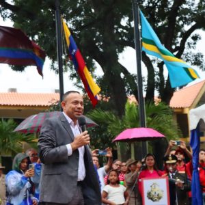 Durante el acto solemne y en perfecta union cívica militar, el gobernador Primitivo Cedeño junto a la primera combatiente María Gabriela Gil, expresó «hoy vamos juntos cabalgando con nuestro presidente Nicolás Maduro, por eso en este maravilloso acto lleno de patriotismo le hago entrega al compañero Lacava para que sigamos levantando la espada en defensa de la patria contra aquellos que pretendan hacerle daño».