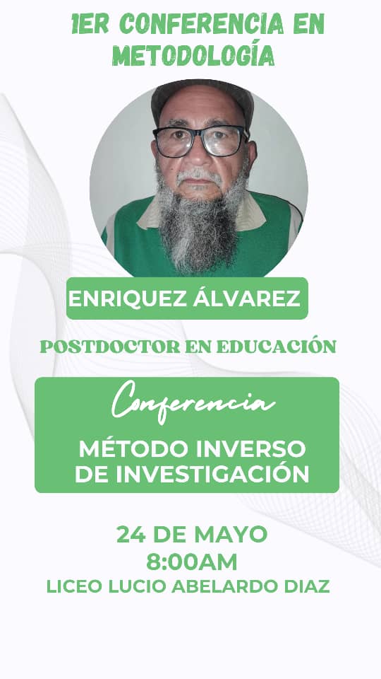 En las instalaciones del liceo Lucio Abelardo Díaz, ubicado en la población de Boconoito del estado Portuguesa se estará realizando este 24 de mayo a partir de las 8; 00 am, la primera Conferencia en Metodología, donde se enfocará el Método Inverso de Investigación, la génesis del procedimiento, entre otros temas.de la exploración.