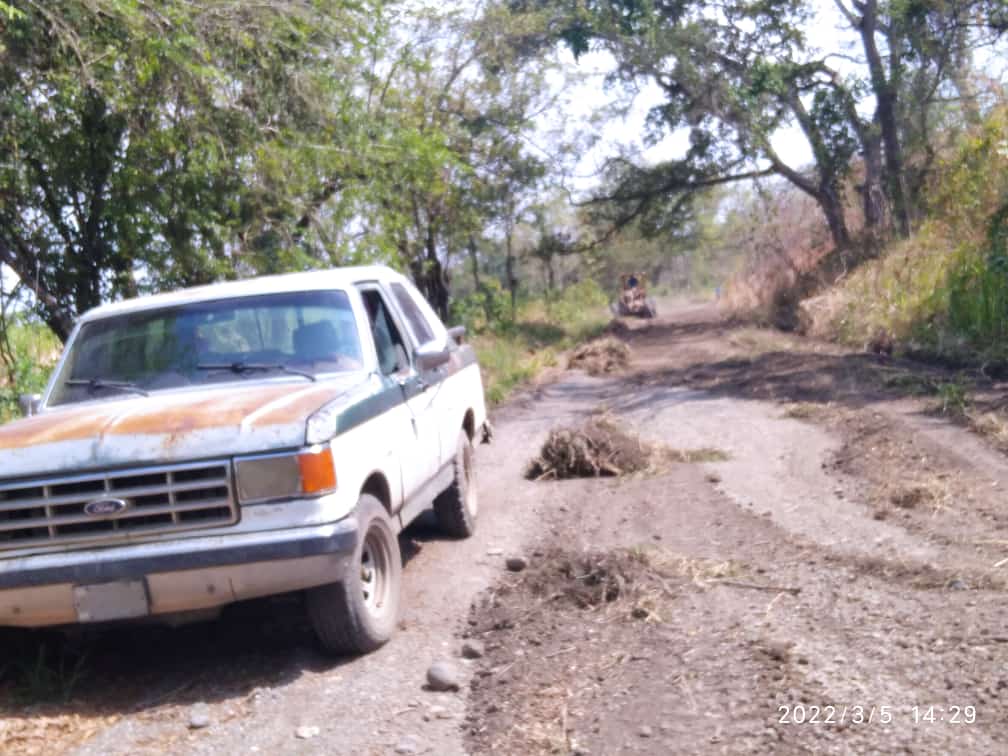 Falta además que el gobierno suministre el material granular, (Granzón). También gracias al agricultor Regulo Veloz, quien está haciendo el mantenimiento de parte de la vía Guasimal y la vía que conduce al caserío El Guásimo.