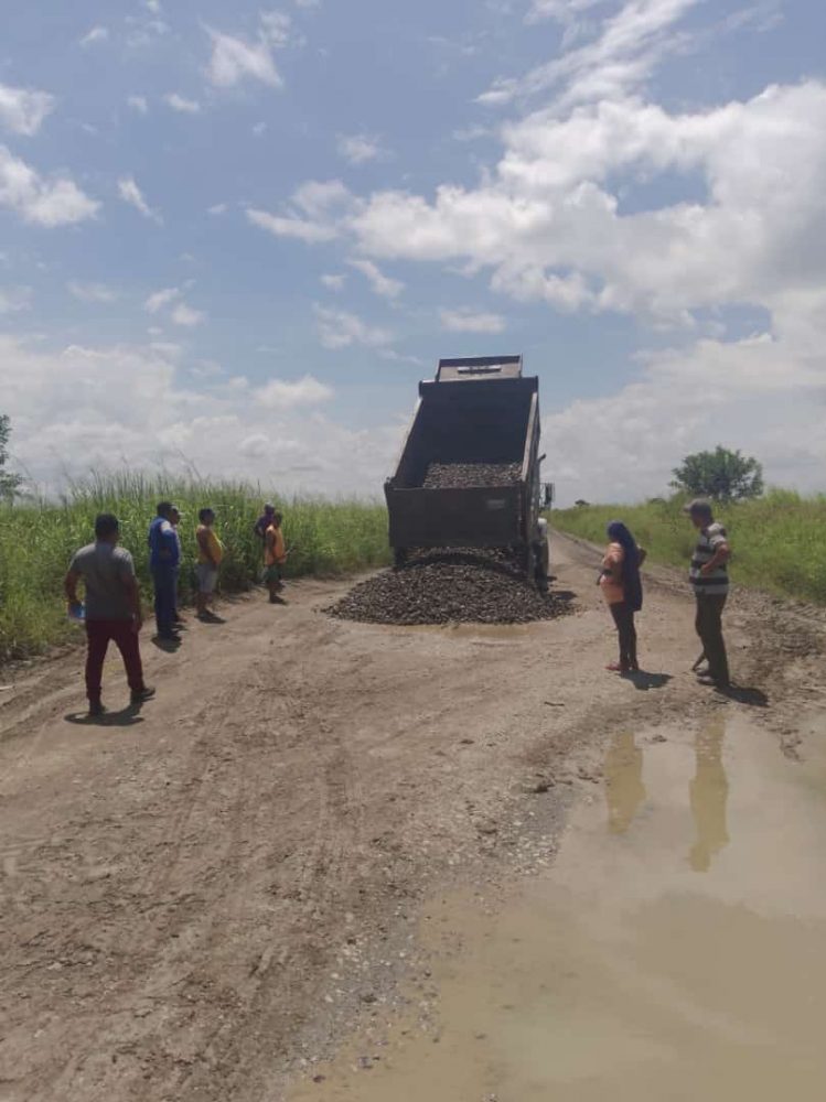Jesús Chirino y Amabilis Perezo, informaron que han comprado y gestionado el material granular para la reparación de la vía, dado a que no han recibido respuestas del ejecutivo municipal, ni regional.