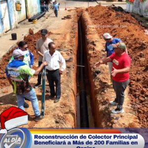 A través del Ministerio para las Aguas, la empresa hidrológica regional Hidrosportuguesa y la Alcaldía Bolivariana de Ospino, se está ejecutando la reconstrucción de 125 metros lineales de tubería del colector principal de aguas servidas en la populosa Comunidad Barrio Arriba.
