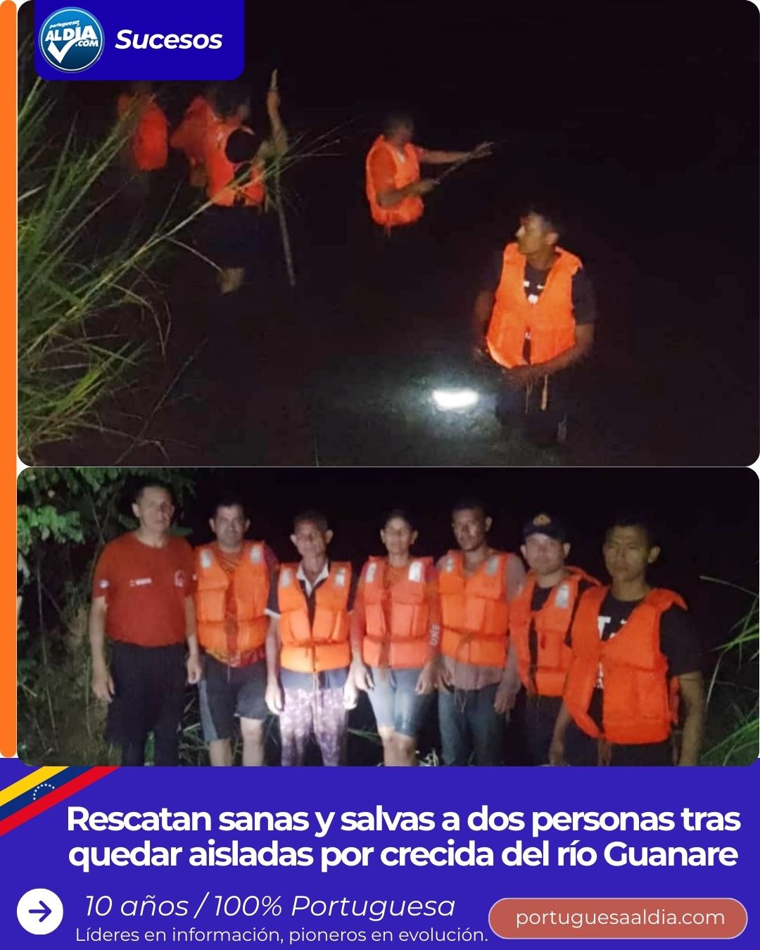 (Miguel Enrique Villavicencio).– Sanas y salvas fueron rescatadas por funcionarios del Instituto de Protección Civil y Administración de Desastres del estado Portuguesa (Inpradep), dos personas que quedaron aisladas luego que la fuerte corriente del río Guanare subiera considerablemente de nivel.