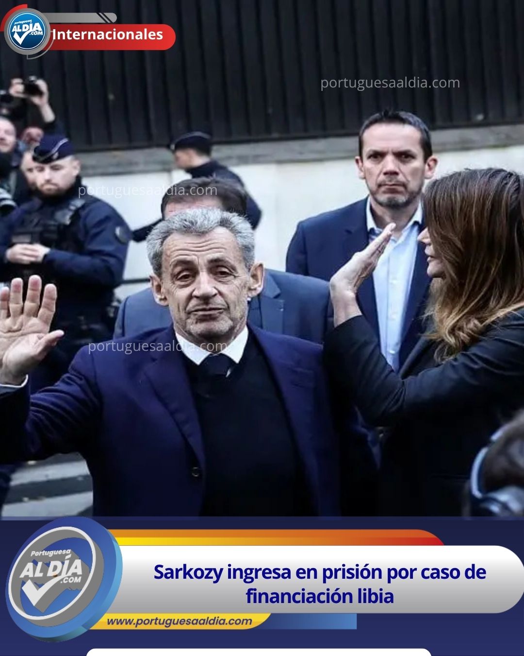 Sarkozy, de 70 años de edad, estaba convocado a presentarse en el centro penitenciario a las diez de la mañana, pero llegó con quince minutos de antelación. Acompañado de su esposa, la reconocida artista Carla Bruni, el expresidente francés accedió al recinto carcelario en vehículo particular, evitando el procedimiento habitual que obliga a los reclusos a entrar a pie por las puertas principales.