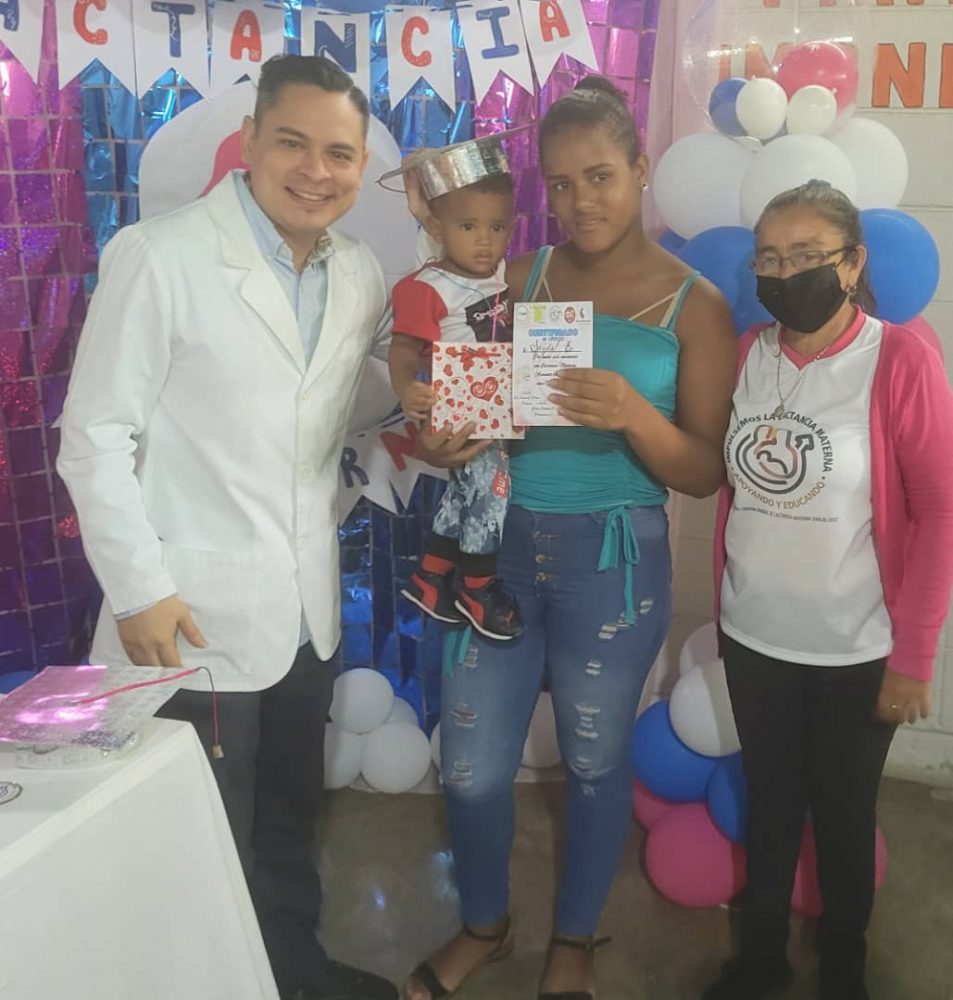 A propósito de esta celebración, el Ambulatorio CPT tipo 3 del Asentamiento Campesino “General José Antonio Páez” (Gato Negro), municipio Guanare, estado Portuguesa, honró al Doctor Carlos Luis Pérez, odontologo de este centro rural dispensador de salud, como padrino promoción de 11 lactantes niños graduados, junto a sus respectivas madres; al cumplir sus metas desde su nacimiento hasta cumplir su primer año de edad como parte del programa de fortalecimiento de la cadena efectiva como apoyo a la lactancia materna.