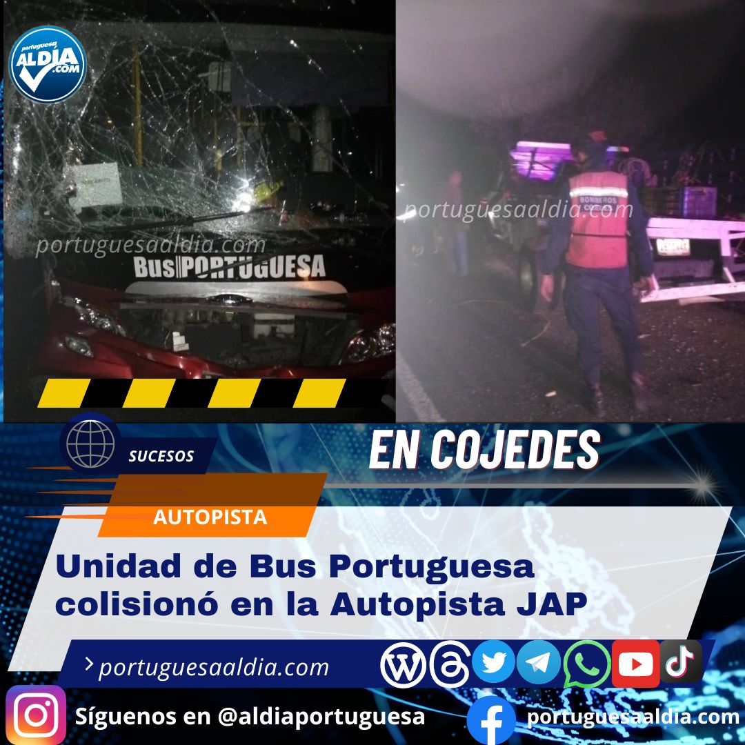 Una unidad colectiva marca Yutong, modelo ZK6852HG, año 2019, color rojo, asignado al número 9043 perteneciente a la empresa Bus Portuguesa, conducido por el ciudadano Juan Hernández de 32 años de edad, el cual resultó lesionado, con traumatismo de tórax, colisionó este domingo 13 de agosto aproximadamente a la 1 de la mañana, con otro vehículo en la Autopista José Antonio Páez, sentido Camoruco – Apartaderos, a aproximadamente 200 MTS del Distribuidor apartaderos municipio Anzoátegui, parroquia Juan de Mata Suárez, del estado #Cojedes.
