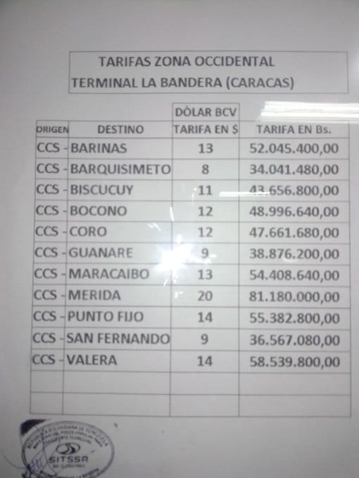 Una nueva tarifa rige a partir de este momento, y es que trasladarse desde Guanare a Caracas o Caracas Guanare, cuesta 38 millones 876 mil 200 bolívares.