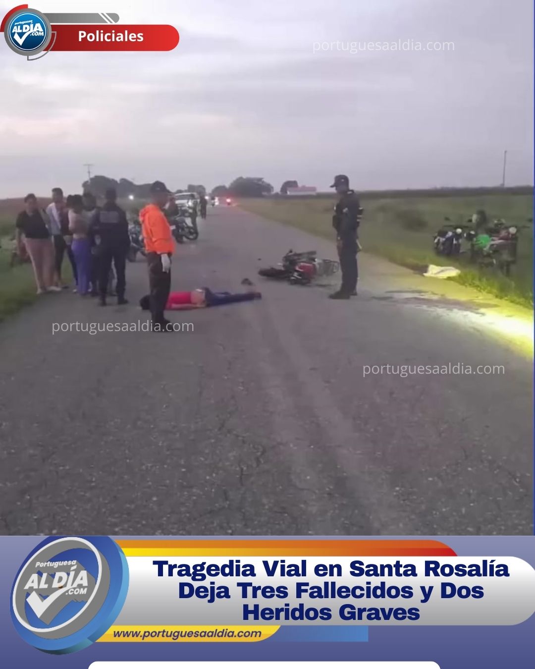 La madrugada de este domingo 21 de septiembre, un accidente de tránsito entre dos motocicletas en la carretera nacional vía a El Playón, municipio Santa Rosalía, resultó en la muerte de tres personas y dejó a dos más con heridas de gravedad.