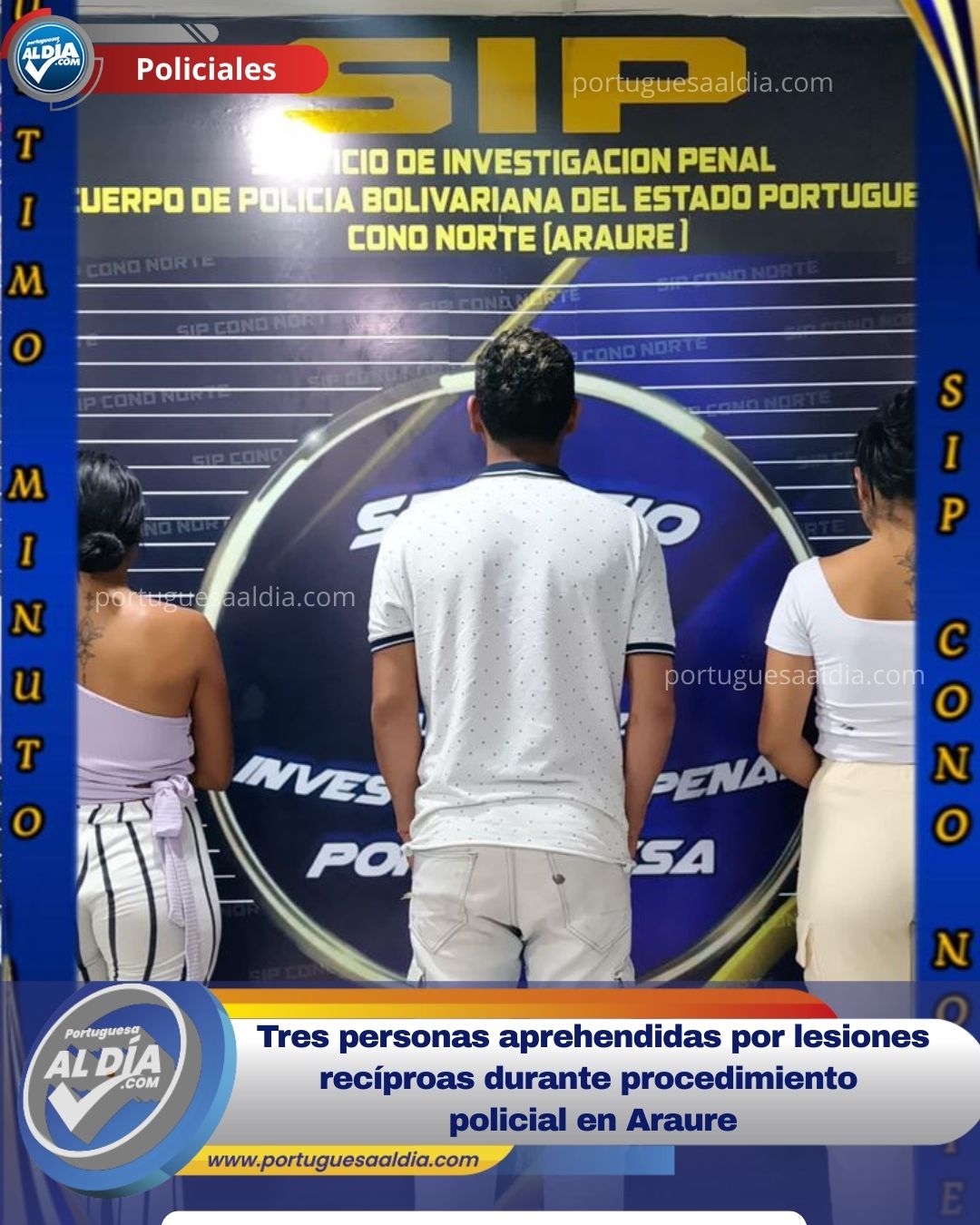 Araure, Portuguesa. – En un procedimiento realizado durante la noche del martes 23 de septiembre, funcionarios del Servicio de Investigación Penal (SIP) Cono Norte, aprehendieron a tres personas por su presunta participación en un hecho de lesiones recíproas. La actuación se llevó a cabo en la Urbanización Villas del Pilar, municipio Araure, en cumplimiento de las directrices del gobernador Antonio Primitivo Cedeño y bajo la coordinación de los altos mandos policiales del estado.