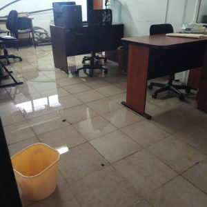 Explicaron que las áreas más afectadas son las oficinas de Compras y Recursos Humanos, mientras que en otros departamentos tambien se moja debido a las filtraciones en el techo que tienen años que no se le hace mantenimiento en su totalidad.