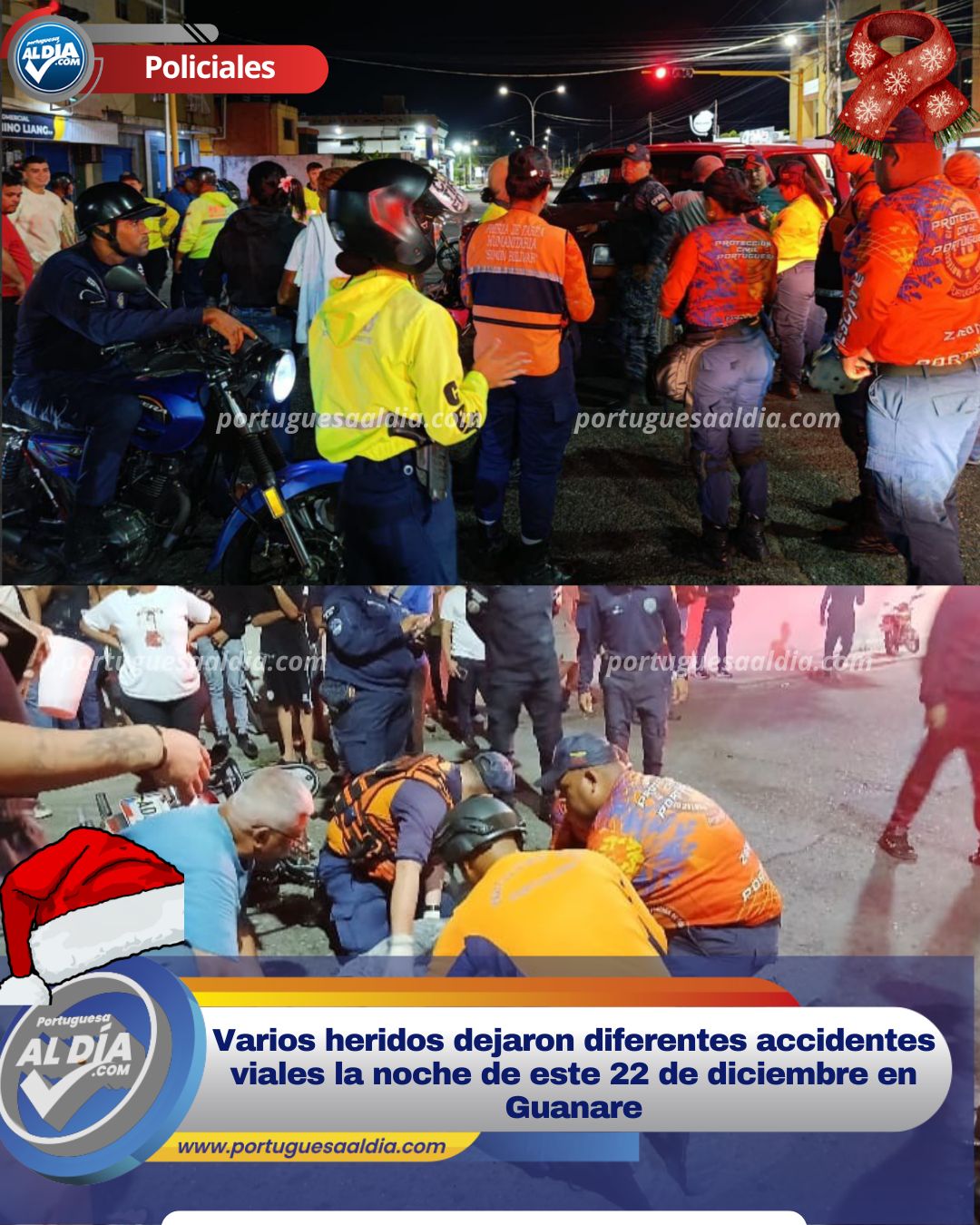 Durante la noche de este lunes 22 de diciembre se registraron varias colisiones de moto y auto en diferentes sectores de la capital portugueseña.
