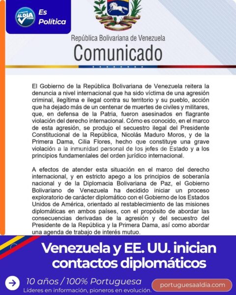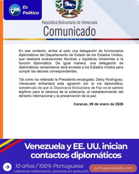 El Gobierno de Venezuela, bajo la gestión de la presidenta encargada Delcy Rodríguez, anunció este viernes 9 de enero el inicio de un «proceso exploratorio de carácter diplomático» con los Estados Unidos. La medida busca restablecer los nexos bilaterales y las misiones diplomáticas en ambos países, marcando un giro inesperado tras la operación militar estadounidense ejecutada el pasado 3 de enero. Según el comunicado difundido por el canciller Yván Gil, una delegación de funcionarios del Departamento de Estado, encabezada por el encargado de negocios John T. McNamara, ya se encuentra en Caracas realizando evaluaciones técnicas y logísticas. En este sentido, Venezuela también enviará una representación a Washington para cumplir con labores correspondientes en el marco de la denominada «Diplomacia Bolivariana de Paz».