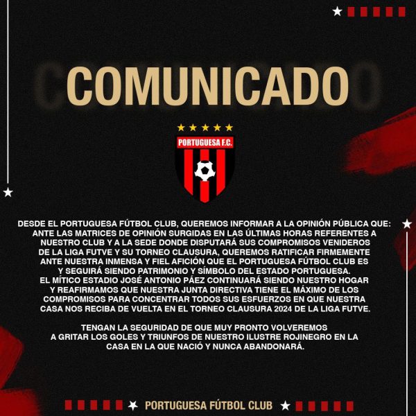 Dijo a través de un comunicado que desde el Portuguesa fútbol club se ratifica firmemente ante la afición que el equipo seguirá siendo patrimonio y símbolo del Estado Portuguesa